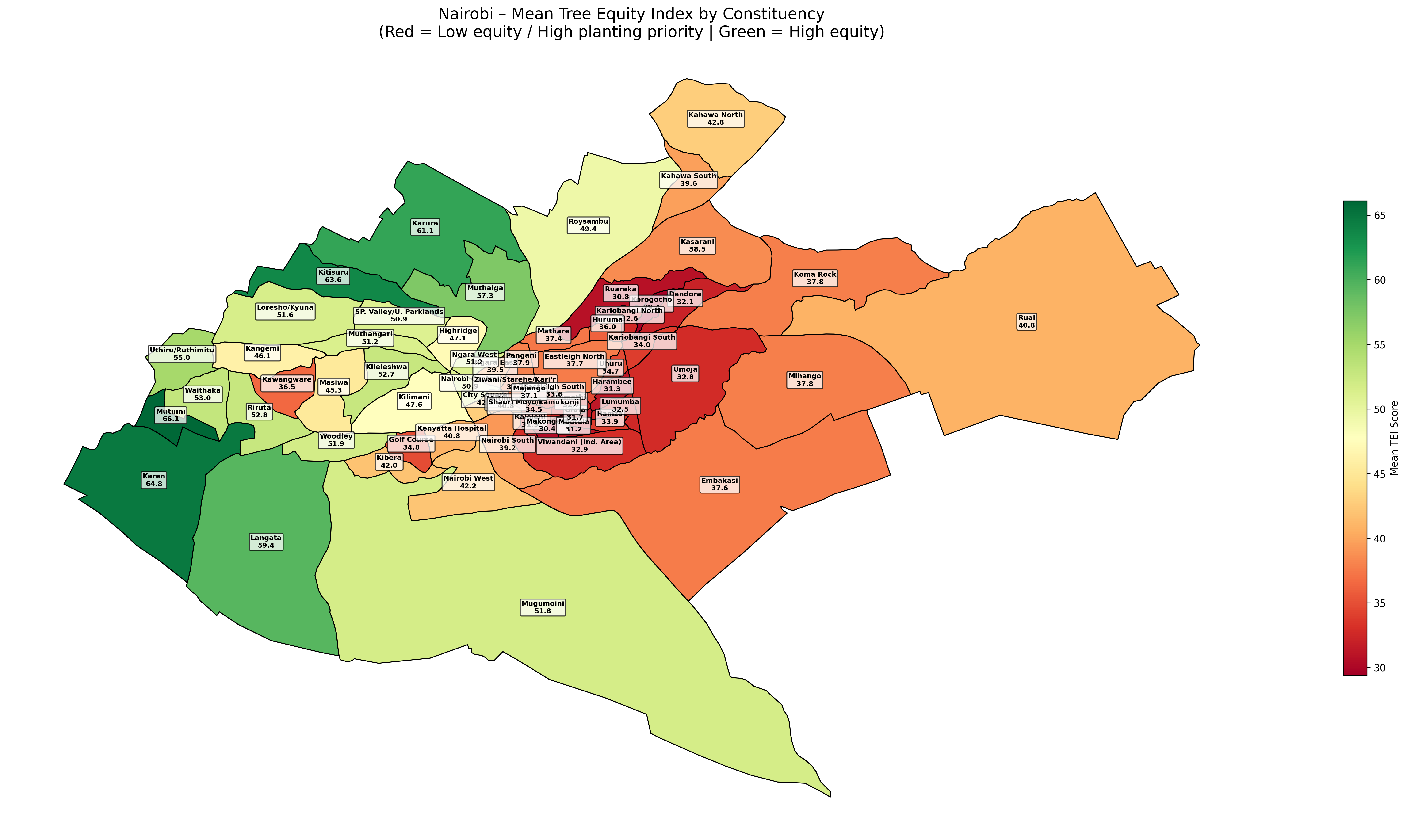 The next step (already underway) is to statistically explore the relationship between UHI, tree equity, and built-up density. Alongside this, I’ve been developing heat risk maps for Nairobi’s wards, as well as corresponding tree equity maps. (Full disclosure: I actually completed this part earlier—I just never got around to publishing this write-up.)